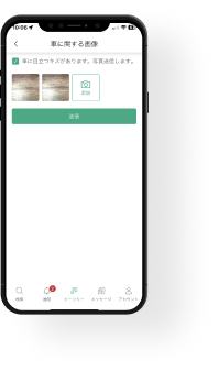 - キズの写真を撮るボタンを押すとカメラ撮影して(任意)『撮影した写真する』ボタンを押します。