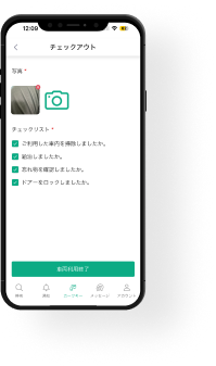 - 車内のチェックが完了したら、車から出て『利用終了』ボタンを押して返却完了です。